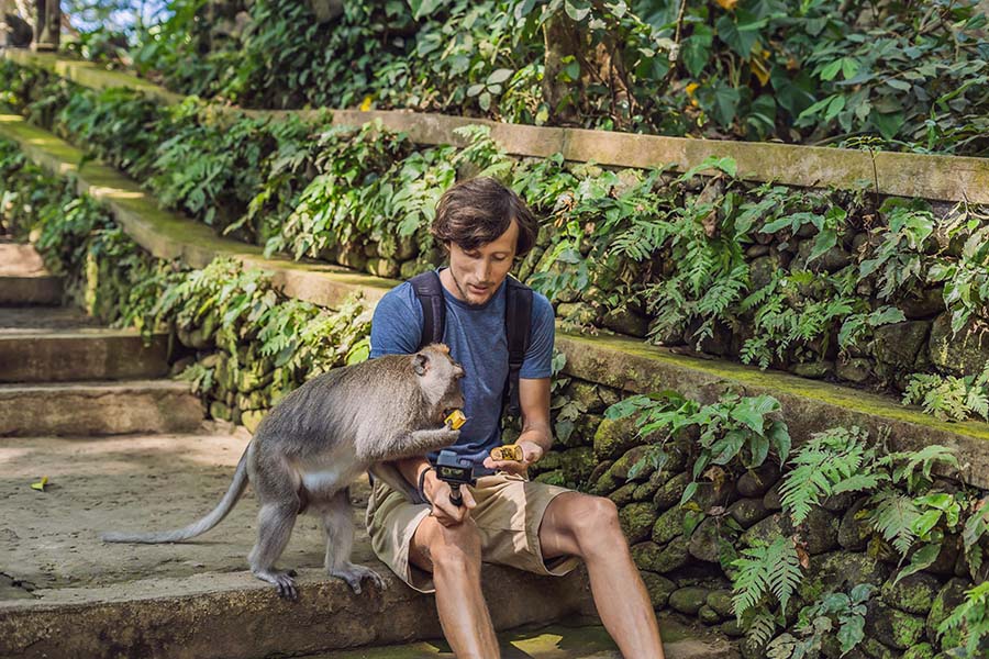 Ubud's Monkey Forest: Ubud's Monkey Forest is a popular tourist attraction located in the town of Ubud on the Indonesian island of Bali. It is officially known as the "Sacred Monkey Forest Sanctuary" or simply the "Monkey Forest" by locals and visitors alike. This natural reserve is renowned for its lush, tropical surroundings and its population of over 700 playful long-tailed macaques, a type of monkey native to Southeast Asia.